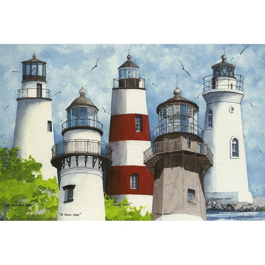 All Five Georgia Lighthouses White Modern Wood Framed Art Print by Rizzo, Gene