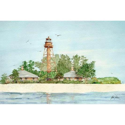 Boca Grand Lighthouse - Fl. White Modern Wood Framed Art Print by Rizzo, Gene