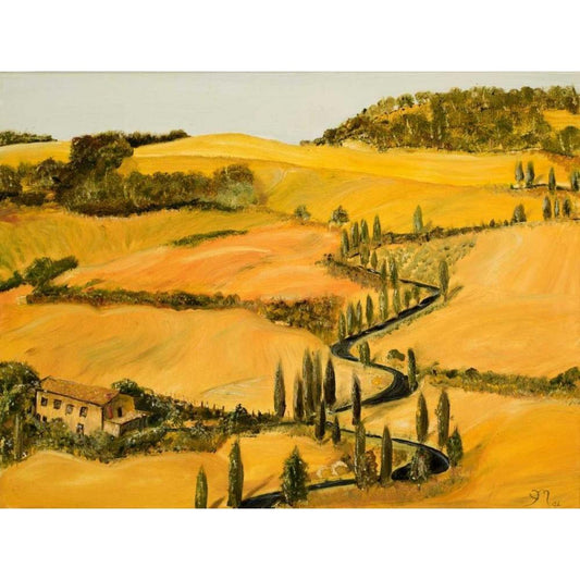 Tuscan Hayfield White Modern Wood Framed Art Print by Monahan, Jodi