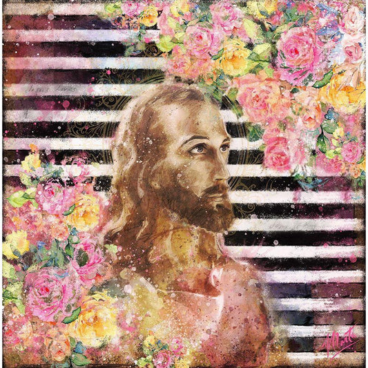 Jesus Rock Star Floral Gold Ornate Wood Framed Art Print with Double Matting by Wiley, Marta
