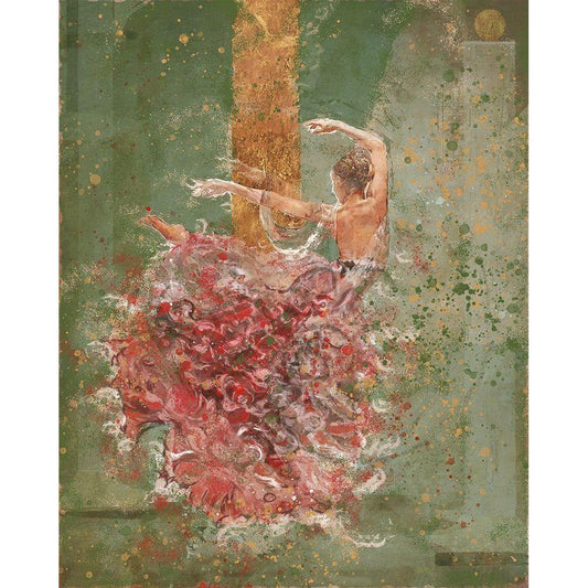 Temple Dancer green Gold Ornate Wood Framed Art Print with Double Matting by Wiley, Marta
