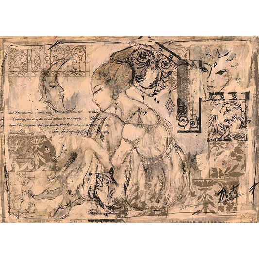 Dancer On Linen- Light Gold Ornate Wood Framed Art Print with Double Matting by Wiley, Marta