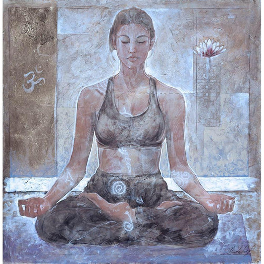 Yoga I- Light Gold Ornate Wood Framed Art Print with Double Matting by Wiley, Marta