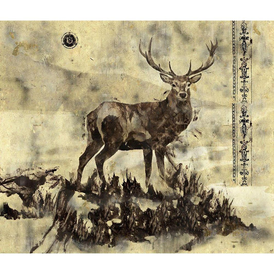 Stag I- Light Gold Ornate Wood Framed Art Print with Double Matting by Wiley, Marta
