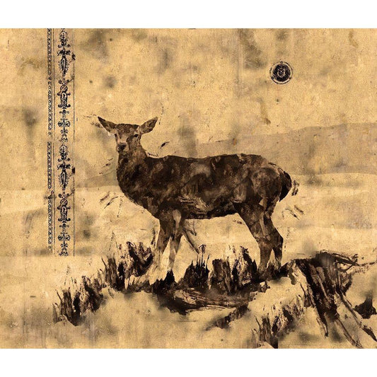 Deer- Beige Gold Ornate Wood Framed Art Print with Double Matting by Wiley, Marta