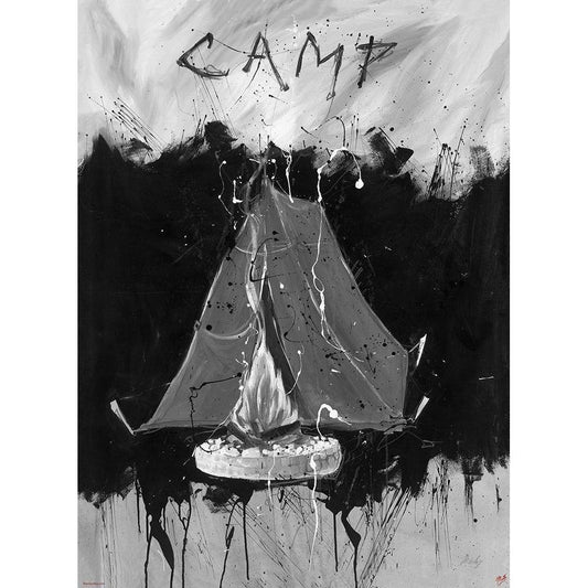 Camping BandW Gold Ornate Wood Framed Art Print with Double Matting by Wiley, Marta