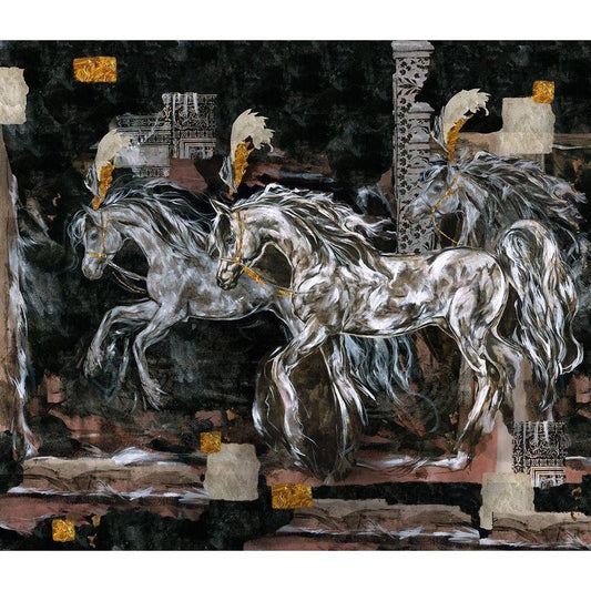 Horse Square Format Black and White Gold Ornate Wood Framed Art Print with Double Matting by Wiley, Marta