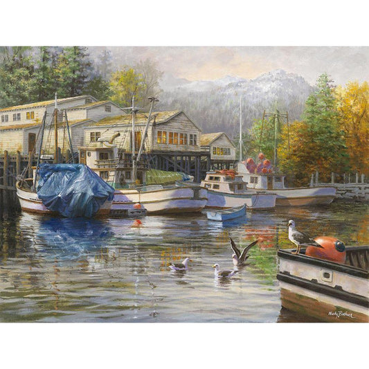 Gulls at the Marina Black Modern Wood Framed Art Print with Double Matting by Boehme, Nicky