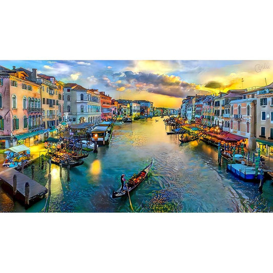 Venice Italy Grand Canal Black Modern Wood Framed Art Print with Double Matting by Gavidia, Pedro