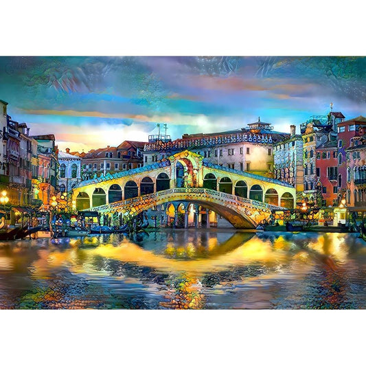 Venice Italy Rialto Bridge at night Black Modern Wood Framed Art Print with Double Matting by Gavidia, Pedro