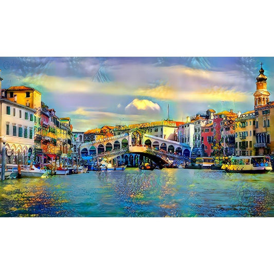 Venice Italy Rialto Bridge Black Modern Wood Framed Art Print with Double Matting by Gavidia, Pedro