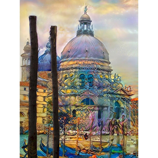 Venice Italy The Salute Church of Saint Mary of Good Health Black Modern Wood Framed Art Print with Double Matting by Gavidia, Pedro
