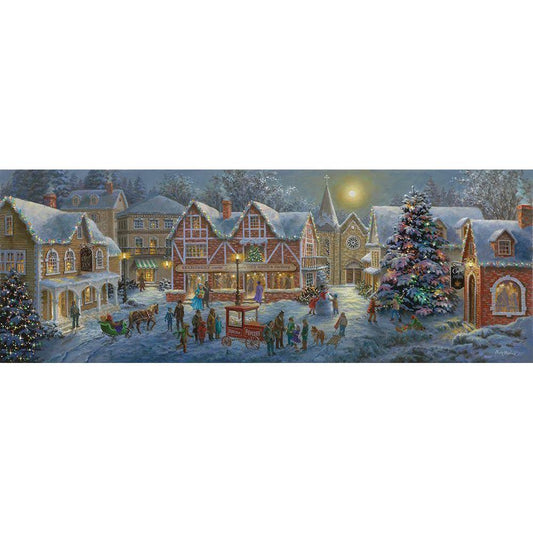 Christmas Village Panoramic Black Modern Wood Framed Art Print with Double Matting by Boehme, Nicky