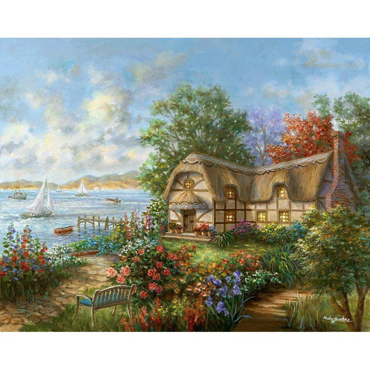 Seacove Cottage Black Modern Wood Framed Art Print with Double Matting by Boehme, Nicky