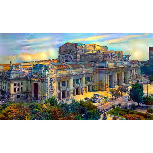 Milan Italy Central Station Black Modern Wood Framed Art Print with Double Matting by Gavidia, Pedro