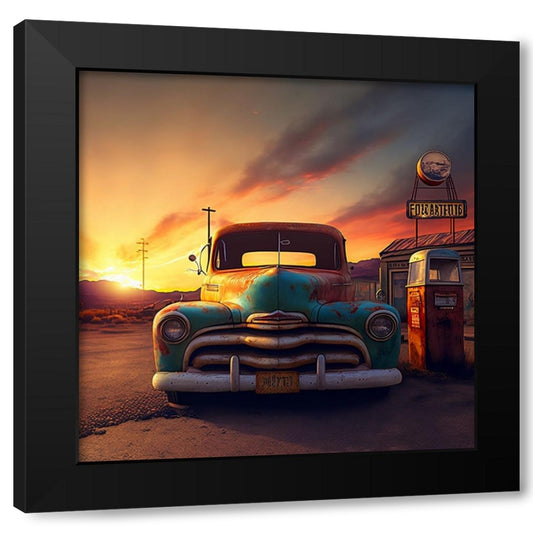 F001 Route 66 Black Modern Wood Framed Art Print with Double Matting by Heere, Ray