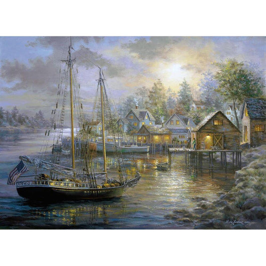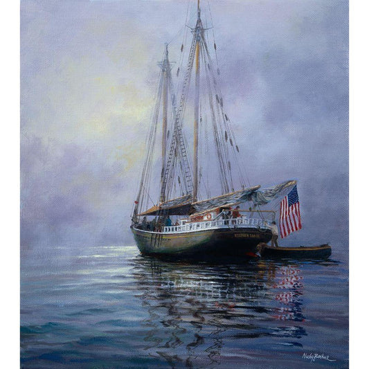 Ships Aglow Black Modern Wood Framed Art Print with Double Matting by Boehme, Nicky
