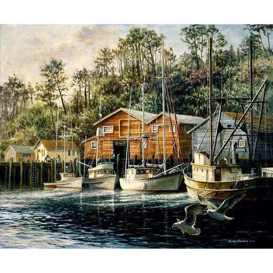 Fishermans Domain Black Modern Wood Framed Art Print with Double Matting by Boehme, Nicky