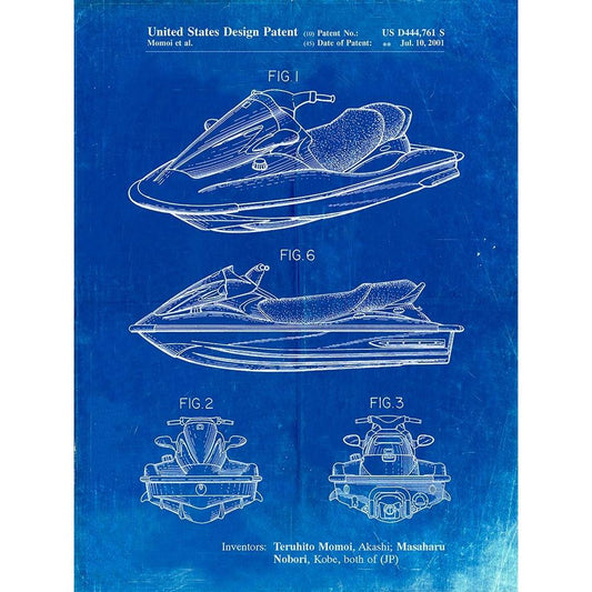 PP903-Faded Blueprint Kawasaki Water Scooter Patent Black Modern Wood Framed Art Print with Double Matting by Borders, Cole