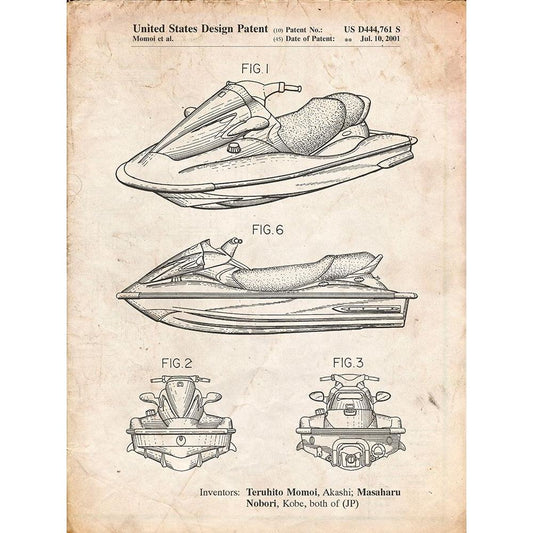 PP903-Vintage Parchment Kawasaki Water Scooter Patent Black Modern Wood Framed Art Print with Double Matting by Borders, Cole