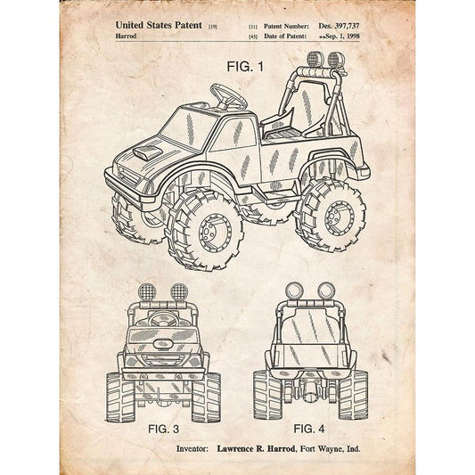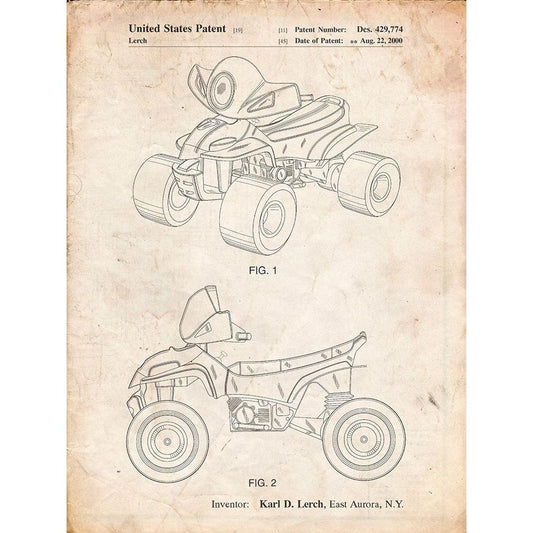 PP908-Vintage Parchment Kids 4-Wheeler Poster Black Modern Wood Framed Art Print with Double Matting by Borders, Cole