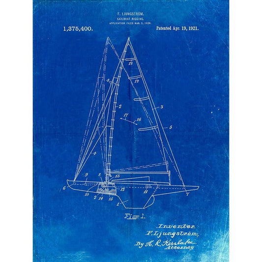 PP942-Faded Blueprint Ljungstrom Sailboat Rigging Patent Poster Black Modern Wood Framed Art Print with Double Matting by Borders, Cole