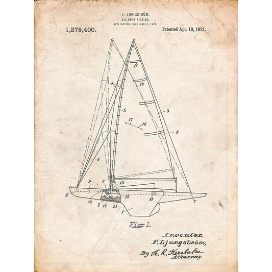PP942-Vintage Parchment Ljungstrom Sailboat Rigging Patent Poster Black Modern Wood Framed Art Print with Double Matting by Borders, Cole