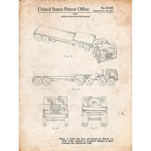 PP946-Vintage Parchment Lockheed Ford Truck and Trailer Patent Poster Black Modern Wood Framed Art Print with Double Matting by Borders, Cole