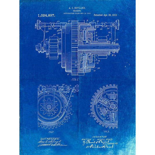 PP953-Faded Blueprint Mechanical Gearing 1912 Patent Poster Black Modern Wood Framed Art Print with Double Matting by Borders, Cole