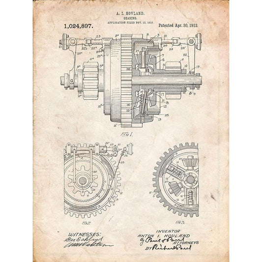 PP953-Vintage Parchment Mechanical Gearing 1912 Patent Poster Black Modern Wood Framed Art Print with Double Matting by Borders, Cole