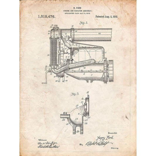 PP960-Vintage Parchment Model T Engine and Radiator Assembly Black Modern Wood Framed Art Print with Double Matting by Borders, Cole