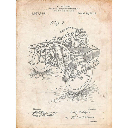 PP963-Vintage Parchment Motorcycle Sidecar 1918 Patent Poster Black Modern Wood Framed Art Print with Double Matting by Borders, Cole