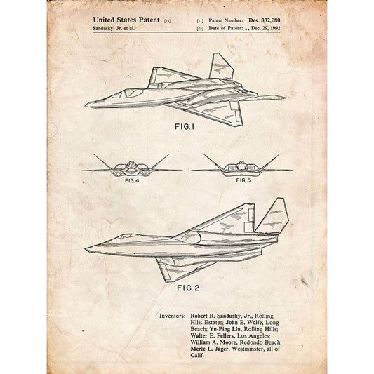 PP972-Vintage Parchment Northrop F-23 Fighter Stealth Plane Patent Black Modern Wood Framed Art Print with Double Matting by Borders, Cole