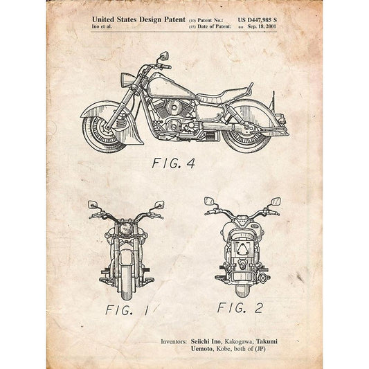 PP901-Vintage Parchment Kawasaki Motorcycle Patent Poster Black Modern Wood Framed Art Print with Double Matting by Borders, Cole