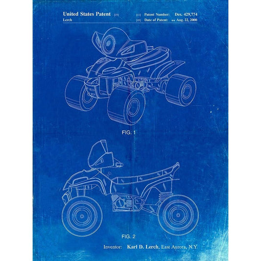 PP908-Faded Blueprint Kids 4-Wheeler Poster Black Modern Wood Framed Art Print with Double Matting by Borders, Cole