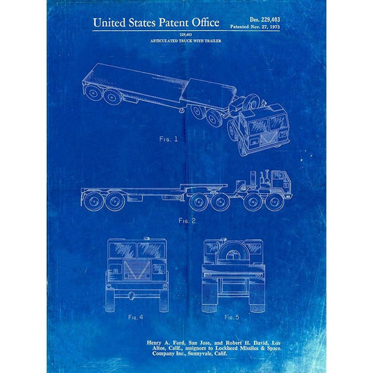 PP946-Faded Blueprint Lockheed Ford Truck and Trailer Patent Poster Black Modern Wood Framed Art Print with Double Matting by Borders, Cole