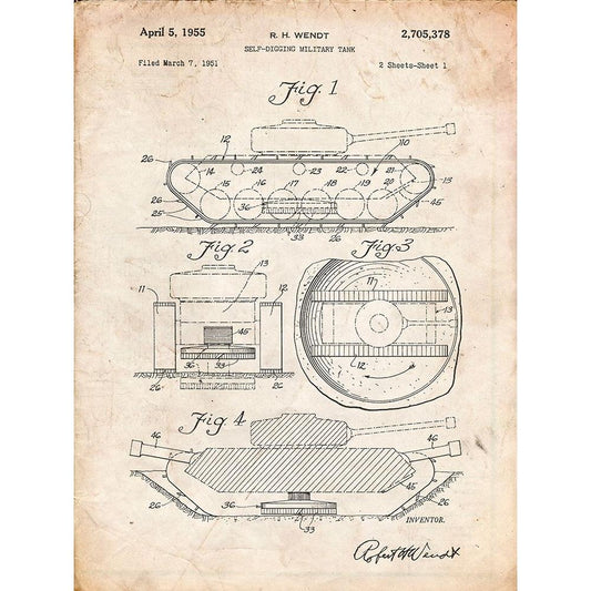 PP262-Vintage Parchment Military Self Digging Tank Patent Poster Black Modern Wood Framed Art Print with Double Matting by Borders, Cole