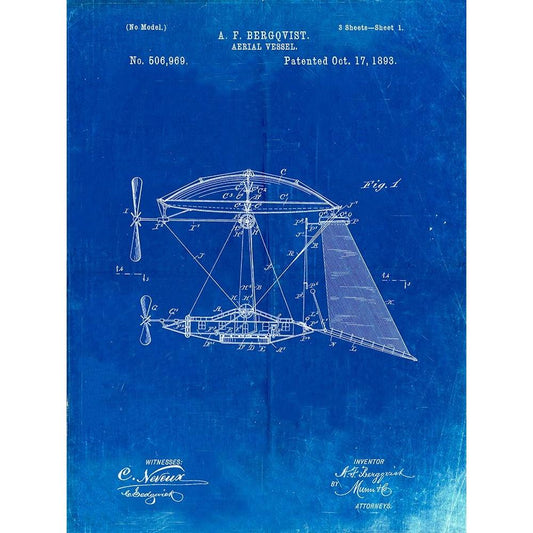 PP426-Faded Blueprint Aerial Vessel Patent Poster Black Modern Wood Framed Art Print with Double Matting by Borders, Cole