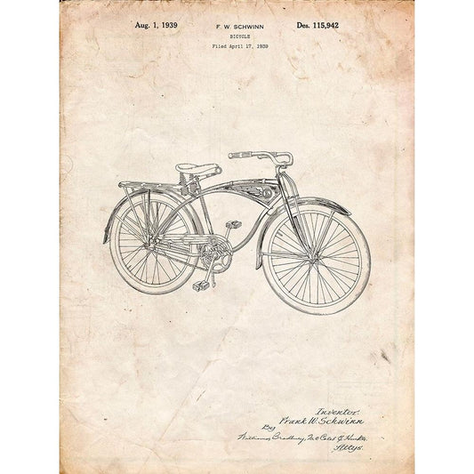 PP446-Vintage Parchment Schwinn 1939 BC117 Bicycle Patent Poster Black Modern Wood Framed Art Print with Double Matting by Borders, Cole