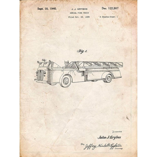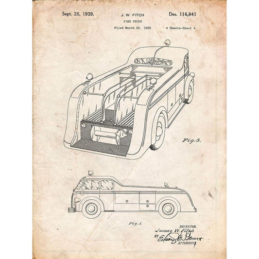 PP506-Vintage Parchment Firetruck 1940 Patent Poster Black Modern Wood Framed Art Print with Double Matting by Borders, Cole
