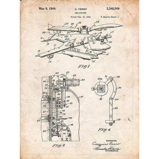 PP500-Vintage Parchment Early Helicopter Patent Poster Black Modern Wood Framed Art Print with Double Matting by Borders, Cole