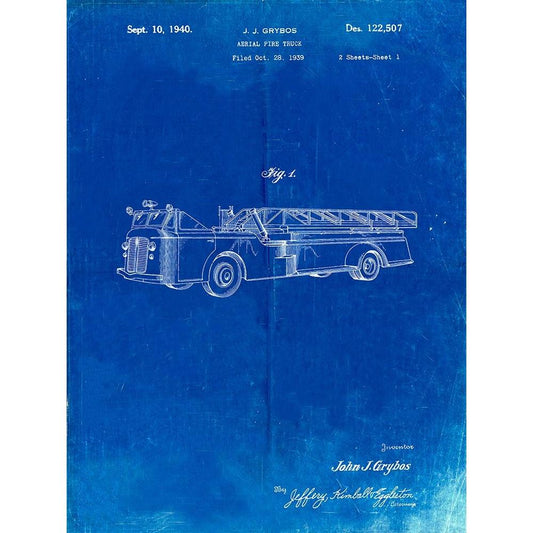 PP506-Faded Blueprint Firetruck 1940 Patent Poster Black Modern Wood Framed Art Print with Double Matting by Borders, Cole