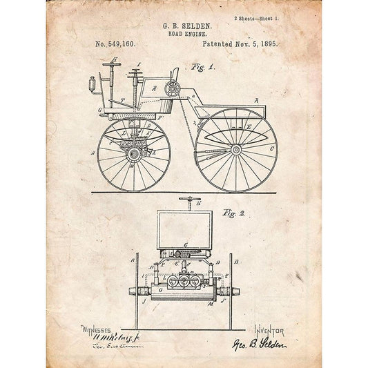 PP243-Vintage Parchment Motor Buggy 1895 Patent Print Black Modern Wood Framed Art Print with Double Matting by Borders, Cole