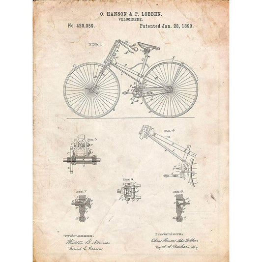 PP248-Vintage Parchment Bicycle 1890 Patent Poster Black Modern Wood Framed Art Print with Double Matting by Borders, Cole