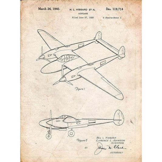 PP277-Vintage Parchment Lockheed P-38 Lightning Patent Poster Black Modern Wood Framed Art Print with Double Matting by Borders, Cole