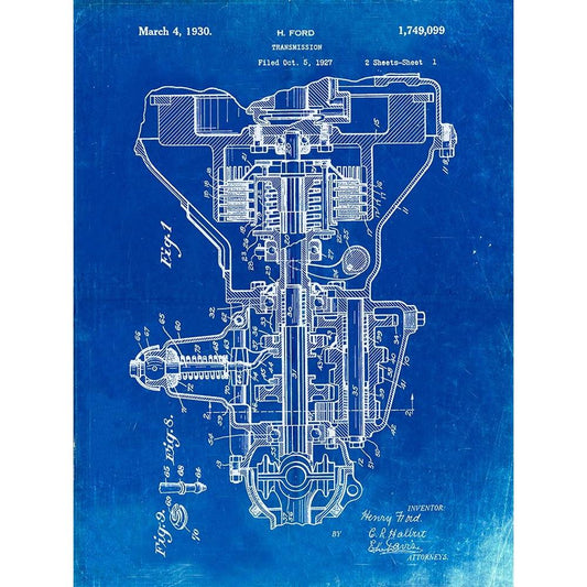 PP289-Faded Blueprint Henry Ford Transmission Patent Poster Black Modern Wood Framed Art Print with Double Matting by Borders, Cole