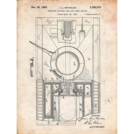 PP365-Vintage Parchment Insulated Military Tank Patent Poster Black Modern Wood Framed Art Print with Double Matting by Borders, Cole