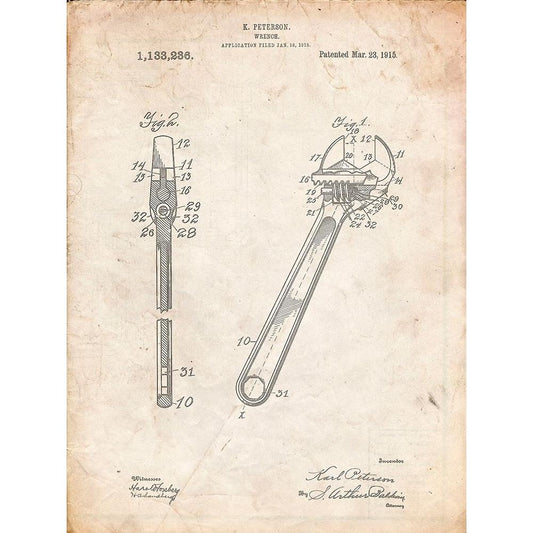 PP439-Vintage Parchment Crecent Wrench 1915 Patent Poster Black Modern Wood Framed Art Print with Double Matting by Borders, Cole