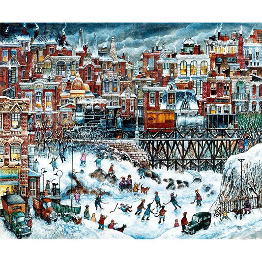 Snowy Streets Black Modern Wood Framed Art Print with Double Matting by Bell, Bill