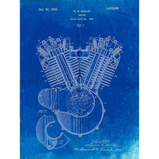 PP24-Faded Blueprint Harley Davidson Engine 1919 Patent Poster Black Modern Wood Framed Art Print with Double Matting by Borders, Cole